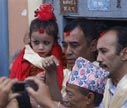 Matani Shakya, 3, newly appointed 'kumari,' or living goddess in Nepal, is greeted by a crowd as she is taken to kumari house in Katmandu, Nepal, Tuesday, Oct. 7, 2008.