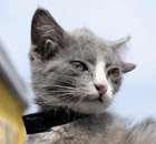 Luntik, a three-month-old kitten with four ears, lives at an automobile service station in Russia's far eastern city of Vladivostok.