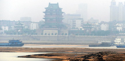 水位下降导致赣江南昌段航道狭窄(12月24日摄)。11月中旬以来,江西境内降雨稀少,赣江水位继续全线回落,继中游吉安、樟树、丰城等水文站突破历史最低水位以来,12月21日,南昌站水位再跌破极值,达到13.55米,比历史最低水位(13.61米)还低0.06米。面对日趋严重的旱情,江西省各级部门正采取紧急措施,确保城乡居民用水安全,努力减轻旱灾损失。