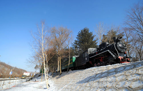 2月17日,亚布力赛区的主干道旁停靠着一列用于展览的蒸汽机车。第24届世界大学生冬季运动会将于2月18日在哈尔滨开幕,亚布力滑雪中心将从20日起承担跳台滑雪、北欧两项、高山滑雪、越野滑雪和自由式滑雪项目的比赛,目前各项准备工作就绪,美丽的亚布力整装待发,迎接雪上比赛的开始。 新华社记者 徐昱摄