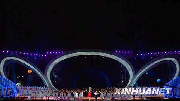 8月6日,儿童演员在表演《我和你》。新华社记者韩岩摄
