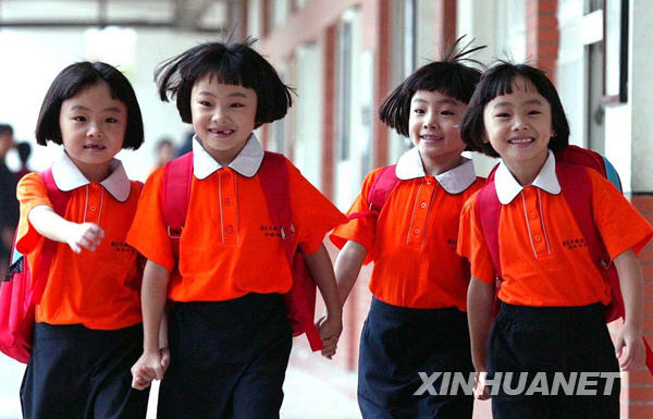 这是南京“四小凤”上小学的第一天(2005年8月30日摄)。新华社发(姚强 摄)