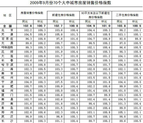 9月份全国70个大中城市房价同比涨2.8% 2009-10-15 17:02