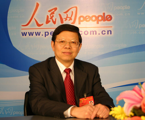 全国人大代表、百色市委书记刘正东与人民网总裁何加正(右)亲切交谈