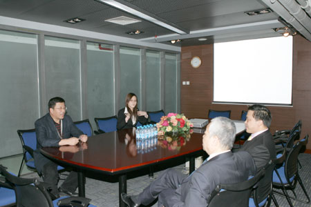 2009年3月11日,全国政协经济委员会副主任,第九届、第十届、第十一届全国政协委员,澳门恒和企业集团主席颜延龄做客中国日报网。图为中国日报网总裁兼总编辑张兴波(左前)在会议室会见颜延龄主席(右前)。