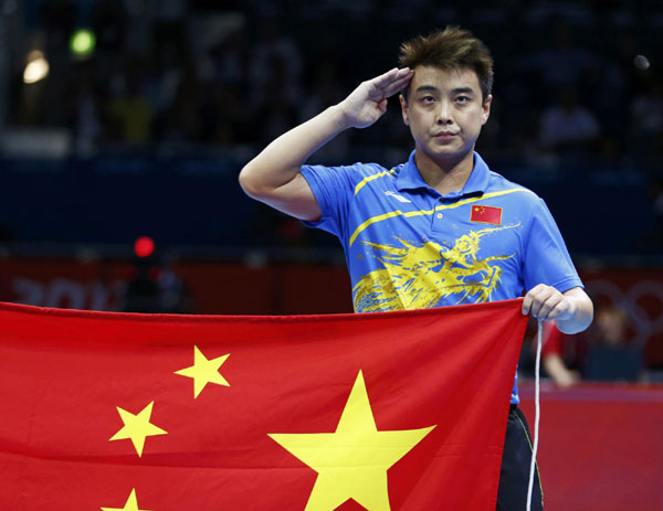 After countryman Zhang Jike converted the match point, Wang Hao graciously accepted his third silver medal in men's singles table tennis in as many Olympics. Showing no tears or remorse, the 29-year-old veteran smiled to the camera and encouraged his fans with respect, generosity and calm. [Full story]