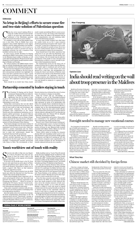 No letup in Beijing's efforts to secure cease-fire and two-state solution of Palestinian question