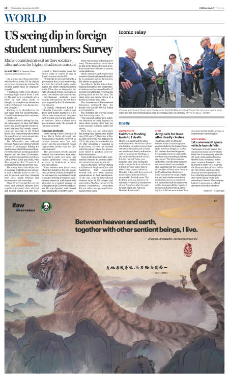 US seeing dip in foreign student numbers: Survey
