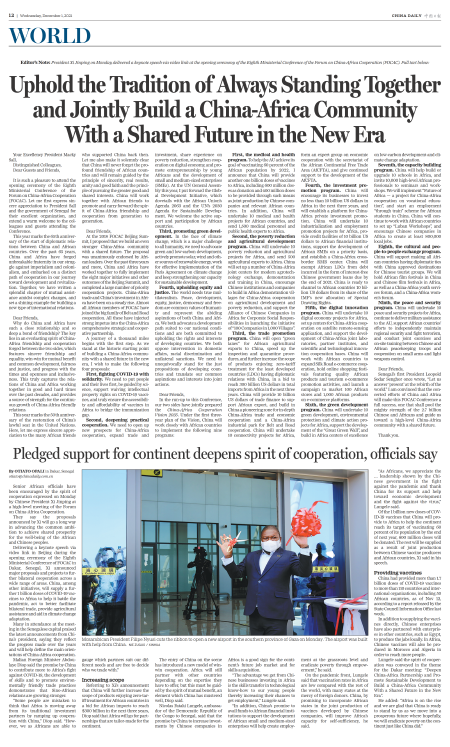 Uphold the Tradition of Always Standing Together and Jointly Build a China-Africa Community With a Shared Future in the New Era