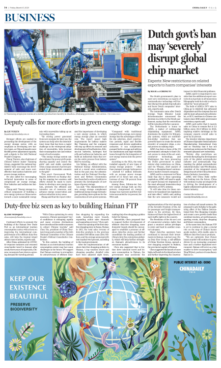 Deputy calls for more efforts in green energy storage