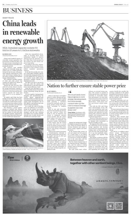 China leads in renewable energy growth