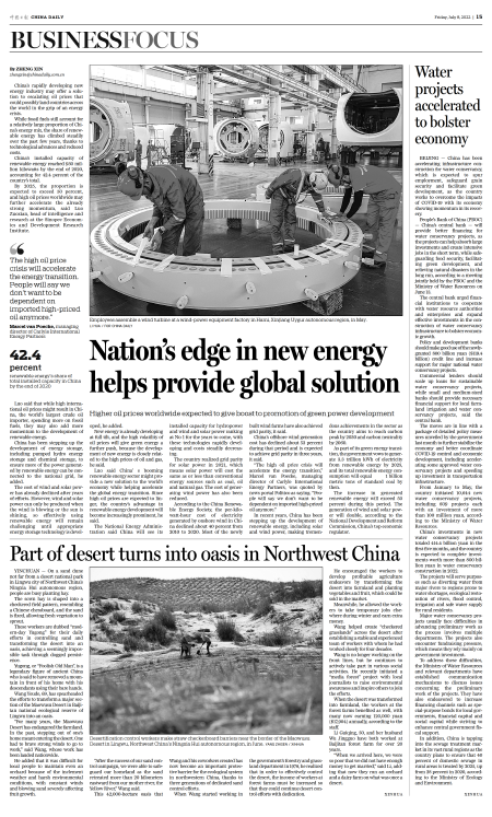 Nation's edge in new energy helps provide global solution