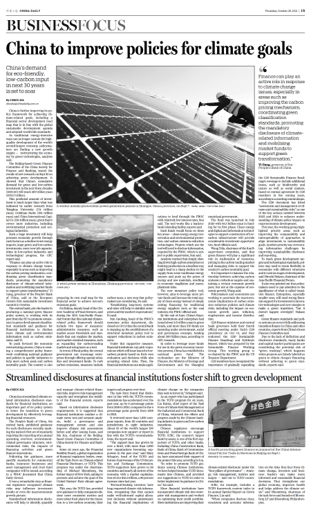China to improve policies for climate goals