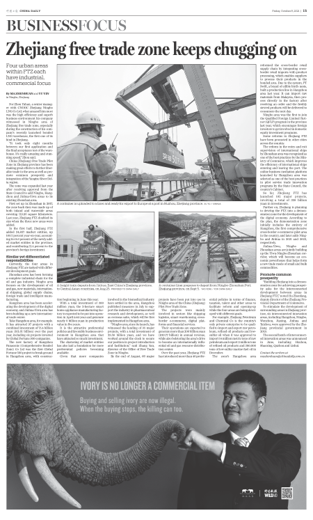 Zhejiang free trade zone keeps chugging on