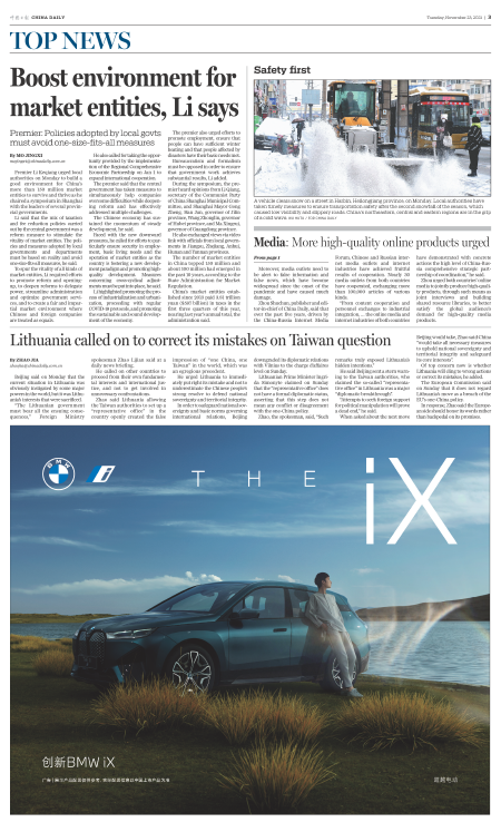 Lithuania called on to correct its mistakes on Taiwan question