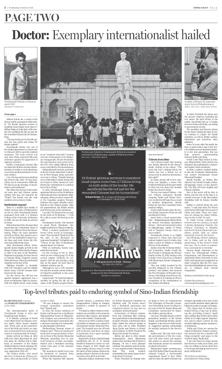 Top-level tributes paid to enduring symbol of Sino-Indian friendship