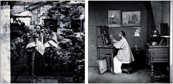 | A Manchu bride at her wedding (left) and a Chinese artist in Hong Kong. |
