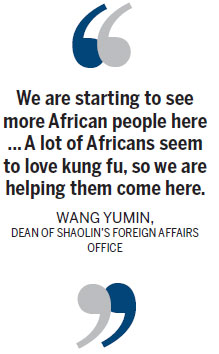 "We are starting to see more African people here," Wang says. "We have some at the moment whose costs have been covered by the temple or the Chinese government's Ministry of Culture. A lot of Africans seem to love kung fu, so we are helping them come here. We want our way of life to help people spiritually and physically, and that includes Africans."