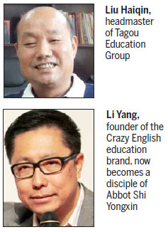 Li Yang, founder of the Crazy English education brand, which uses a shouting technique to help Chinese students learn, is the latest in a string of high-profile businesspeople and celebrities to become disciples of Shi Yongxin, the abbot of the famous Shaolin Temple.