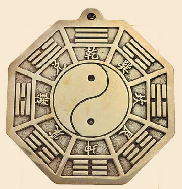 Taoists once believed that bronze mirrors were capable of fending off bad spirits, as explained by Ge Hong in his book Baopuzi (《抱朴子》, [Book of] Master Who Embraces Simplicity): "Demons deceive by transforming themselves into humans, and only the bronze mirror can reflect their true forms." Bagua mirrors evolved from ancient bronze mirrors and are surrounded by the bagua pattern (the Eight Diagrams in I Ching, an ancient Chinese book of divination). Some modern versions replace the mirror itself with a symbol of the universe from tai chi, an ancient philosophy and martial art often practiced for health benefits. For the best chance of warding off bad juju, it is often hung high, normally under the eaves of a home.