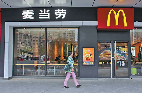 | A pedestrian passed by a McDonald outlet in Wuhan, Hubei province on April 23, 2015. Chu Lin / CFP |