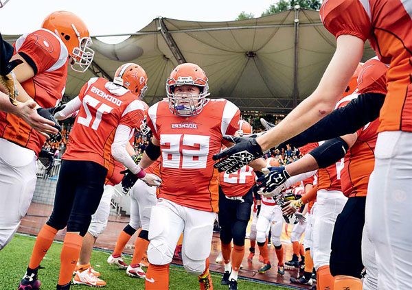 | The Chongqing Dockers hit the field for a championship game. Provided to China Daily |