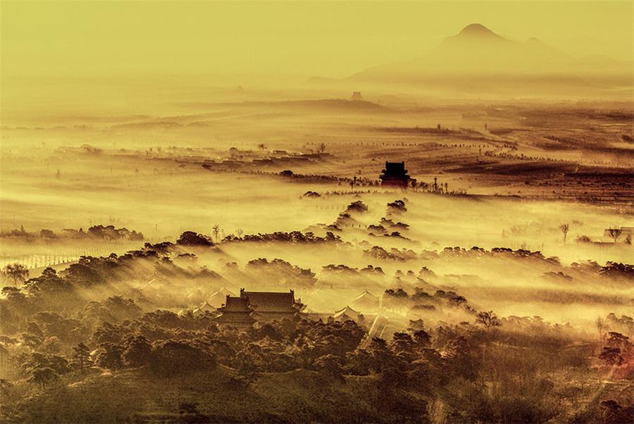 Eastern Tombs of the Qing Dynasty Wreathed in Mist taken by Liu Mancang in Hebei province. [Photo provided by cpanet.org.cn] |