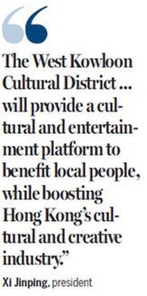 "The West Kowloon Cultural District has been an important project through several terms of the Hong Kong Special Administrative Region's government. It will provide a cultural and entertainment platform to benefit local people, while boosting Hong Kong's cultural and creative industry," Xi said.