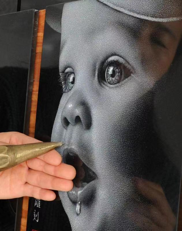 Fang Shiying modifies one of her slate “paintings” at a studio in Cangzhou, Hebei province on Nov 27. [Photo by Yuan Liwei for chinadaily.com.cn]
