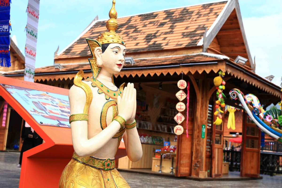 A Thai-style Buddhist image is among the displays at the Mekong 6-country Water Market in Xishuangbanna Dai autonomous prefecture in Southwest China’s Yunnan province. [Photo by Zhang Yipeng for chinadaily.com.cn]