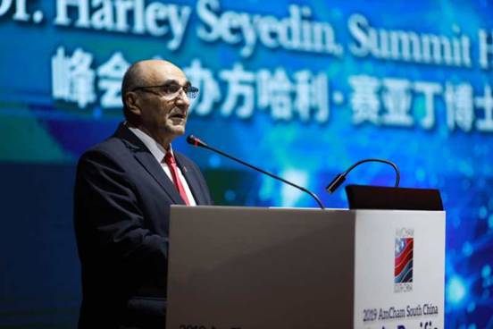 "We are all concerned about what has been termed a trade war, and we all hope that it ends soon, and it must end soon as we need to lead the world together through cooperation and friendship," said Harley Seyedin, president of the American Chamber of Commerce in South China (AmCham South China).