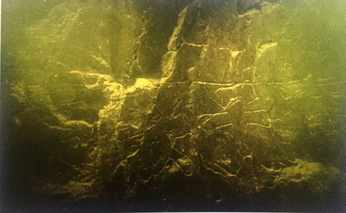 A diving survey found an inscription from the Ming Dynasty (1368-1644) near Canglang Pavilion in the submerged ancient Junzhou city in Hubei province. [Photo provided to chinadaily.com.cn]