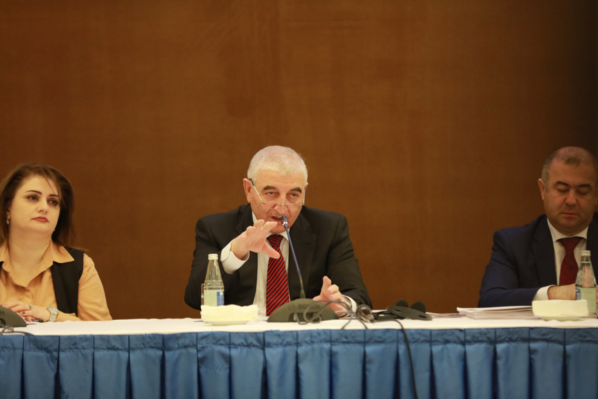 Chairman of Central Election Commission of Azerbaijan MazahirPanahov introduced the election to foreign media in a briefing. [Photo by Ren Qi/chinadaily.com.cn]
