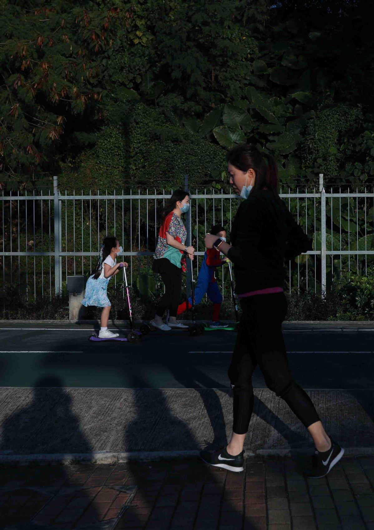 Residents wearing masks exercise outside in Hong Kong, on Feb 29, 2020. [Photo by Calvin Ng/chinadaily.com.cn]