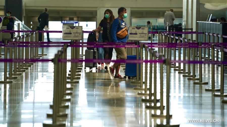 Passengers are seen at the Hong Kong International Airport in Hong Kong, March 10, 2020. [Photo/Xinhua]