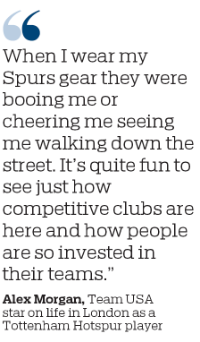 "When I wear my Spurs gear they were booing me or cheering me seeing me walking down the street," she said. "It's quite fun to see just how competitive clubs are here and how people are so invested in their teams."