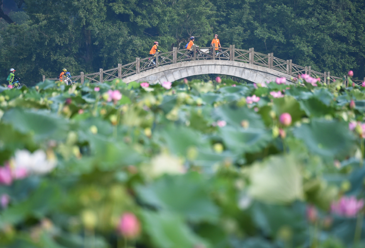 Visitors admire the lotus fields in Xiuzhu village, Jianning county, Sanming. SONG WEIWEI/XINHUA