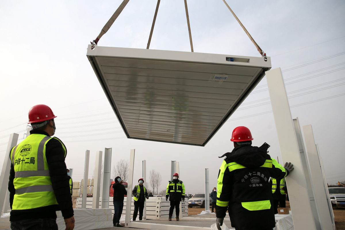 The center, using the land of a factory, is among the makeshift facilities with a total of 6,500 rooms planned to be urgently built at six locations in the city of Nangong to cut the spread of COVID-19.