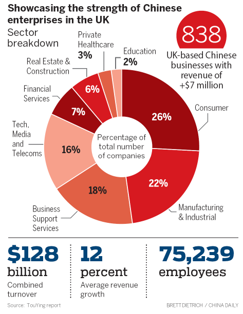 The companies contributed a total of 92 billion pounds ($128 billion) in revenue, up by 1 billion year-on-year, and the total value of Chinese merger and acquisition deals in the UK was 4.7 billion pounds, an increase of 31 percent from 2019.
