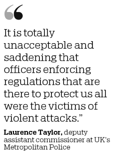 "It is totally unacceptable and saddening that officers enforcing regulations that are there to protect us all were the victims of violent attacks."