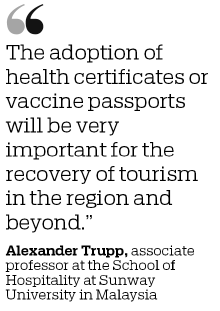 "The adoption of health certificates or vaccine passports will be very important for the recovery of tourism in the region and beyond," said Alexander Trupp, associate professor at the School of Hospitality at Sunway University in Malaysia.