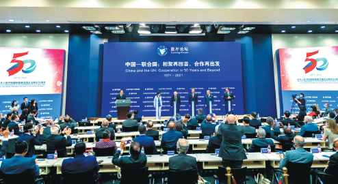 Over the past five decades, China has joined almost all universal intergovernmental organizations, signed more than 600 international conventions, earnestly fulfilled its international obligations, and honored its international commitments. Over the past five decades, holding high the banner of multilateralism, China has firmly safeguarded the UN-centered international system, upheld the international order underpinned by international law, and bolstered the central role of the United Nations in international affairs.