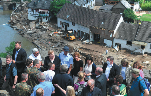 Merkel visited the village of Schuld in Rhineland-Palatinate state, one of the two hardest-hit regions in western Germany, where the swollen Ahr river swept away houses and left debris piled high on the streets.