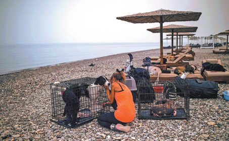 As blazes burned unabated in many parts of the country for a seventh day, the biggest front was on Evia just off the mainland east of Athens. Smoke and ash from Evia blocked out the sun and turned the sky orange. So far, the fires have killed two people.
