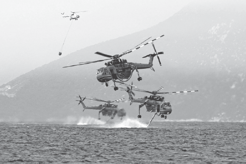 With the assistance of a huge multinational force, Greek fire crews were fighting to beat blazes on the island of Evia and in the Peloponnese peninsula in rugged terrain.