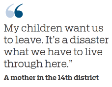 "My children want us to leave. It's a disaster what we have to live through here," a mother in the 14th district told Agence France-Presse on Tuesday on condition of anonymity.