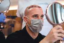 Alberto Bolos Sanchez, a 31-year-old Spanish man, also seemed satisfied with the result after Terziler showed him the new hair follicles transplanted onto a bald area on his head.
