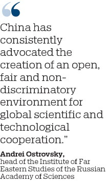 Andrei Ostrovsky, head of the Institute of Far Eastern Studies of the Russian Academy of Sciences, said: "China has consistently advocated the creation of an open, fair and non-discriminatory environment for global scientific and technological cooperation."