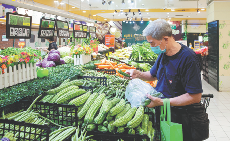 A shopper buys vegetables at a supermarket in Nanjing, Jiangsu province. SU YANG/FOR CHINA DAILY
