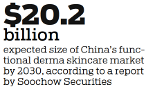 A report by Soochow Securities said China's functional derma skincare market is expected to be worth about 130 billion yuan ($20.2 billion) by 2030.